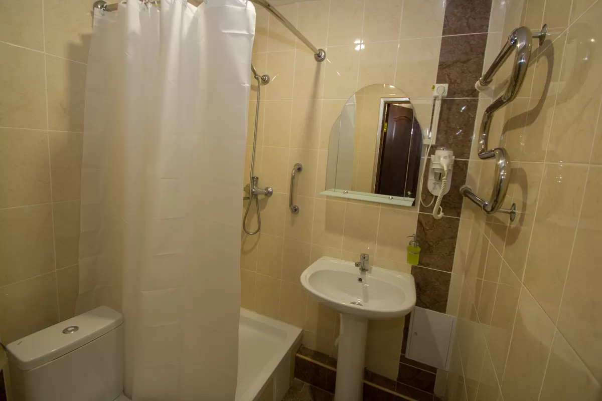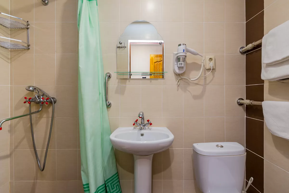 В номере есть зеркала - в комнате и в уборной. Совмещенный санузел включает в себя унитаз, умывальник и душевую. Там же находятся сушилки для полотенец. Уборка и смена белья проводятся регулярно. Персонал санатория им. Э. Тельмана создает гармоничную и уютную обстановку для отдыхающих.